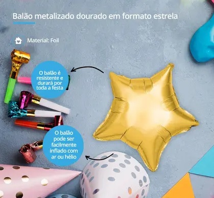 BALAO METAL SILVER ESTRELA DOUR 45CM UN