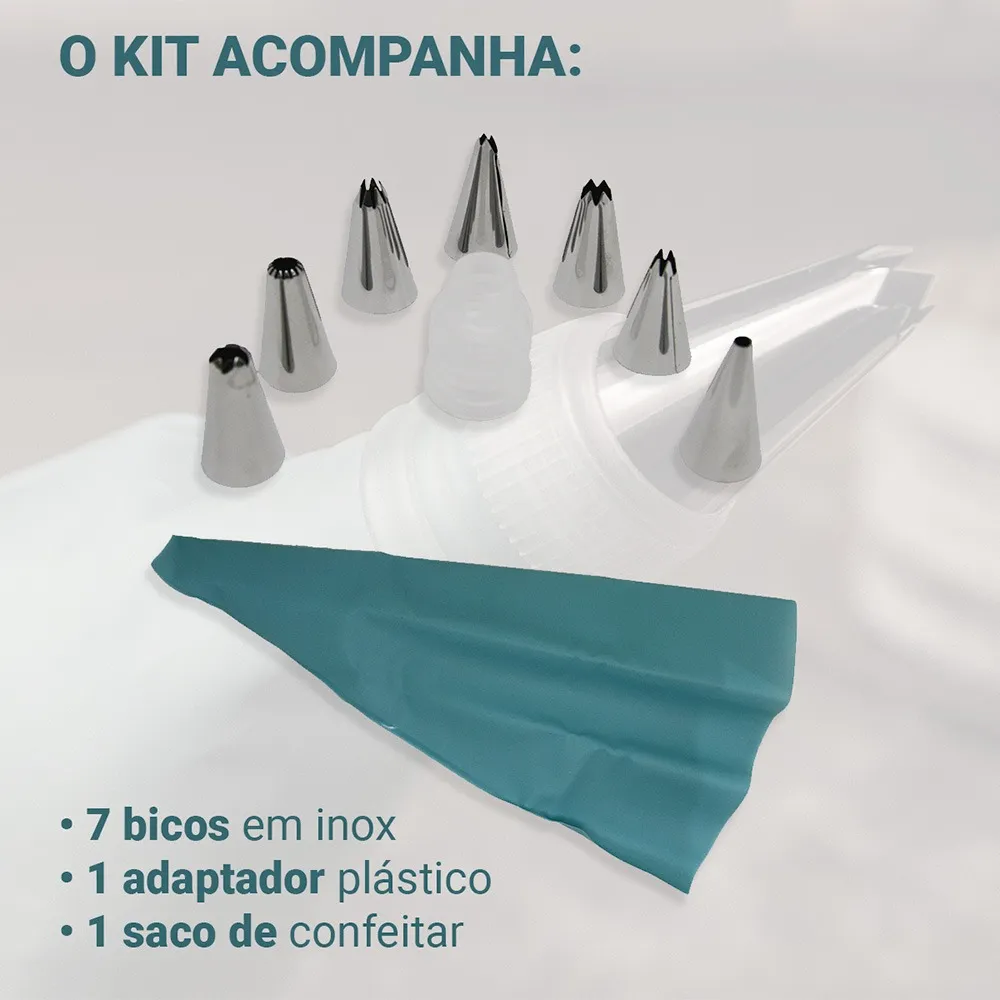 KIT 7 BICOS CONFEITAR SILVER ADAPT MANGA