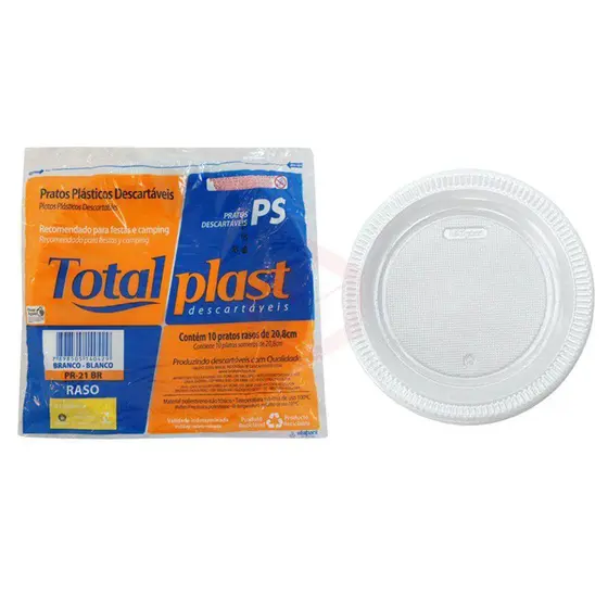 PRATO PLASTICO RASO TOTALPLAST 21CM C/10